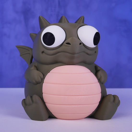 Guard your treasure with this adorable 5" dragon coin bank. With big goofy eyes, tiny wings, and a round belly ready to hold your gold (or spare change), this little guardian is perfect for kids, fantasy lovers, or anyone who wants a touch of whimsy on their shelf.
