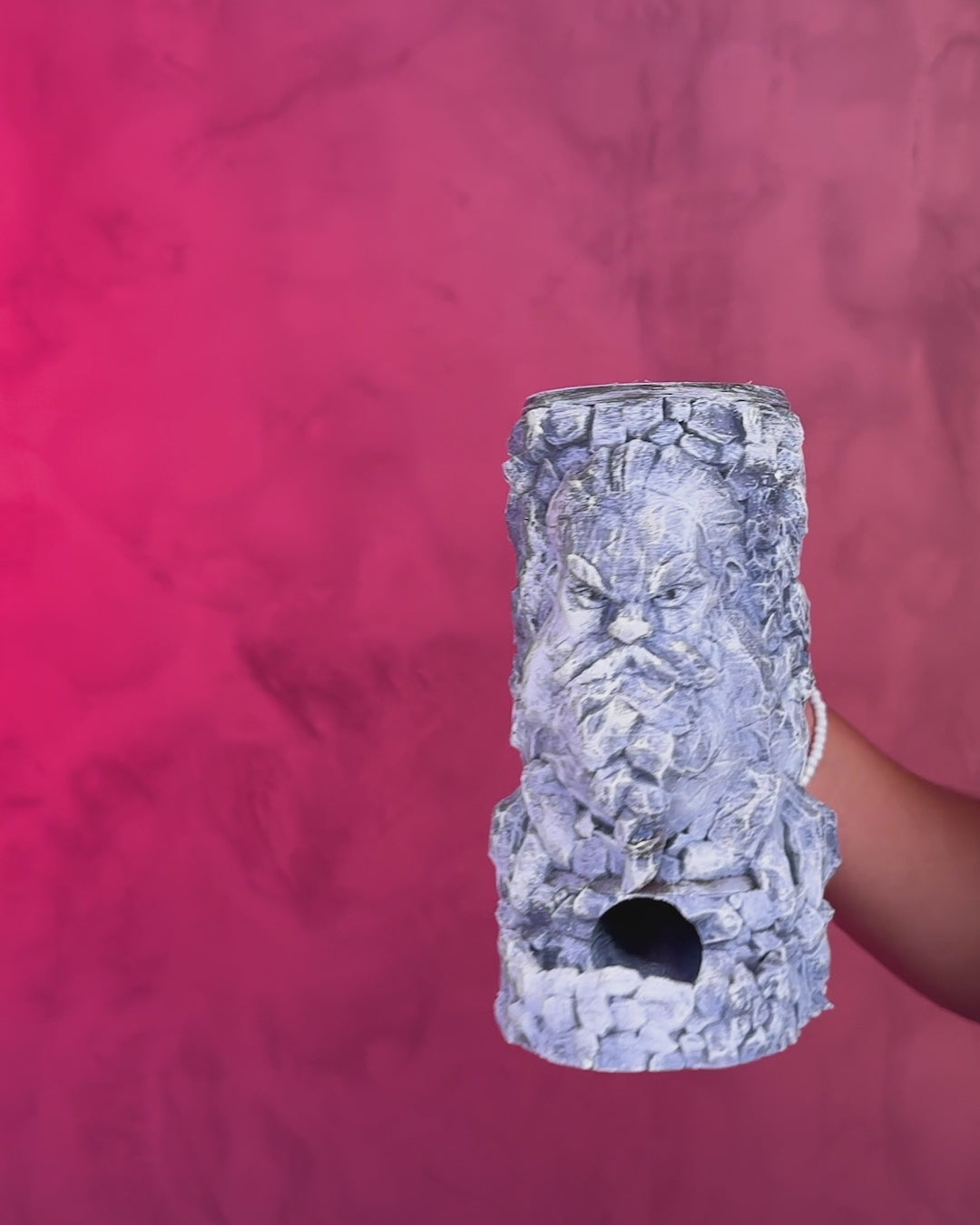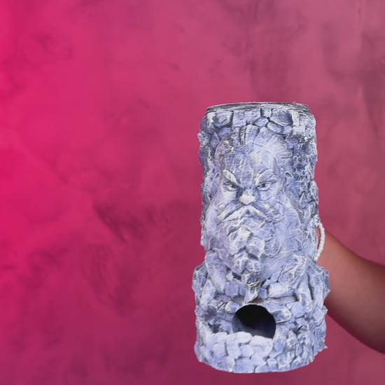 Raise a drink like a true dwarf! Crafted with the look of stone and sturdy dwarven design, this koozie holds your 12oz cans while doubling as a dice roller. Strong, practical, and ready for game night—just like any good dwarf creation.