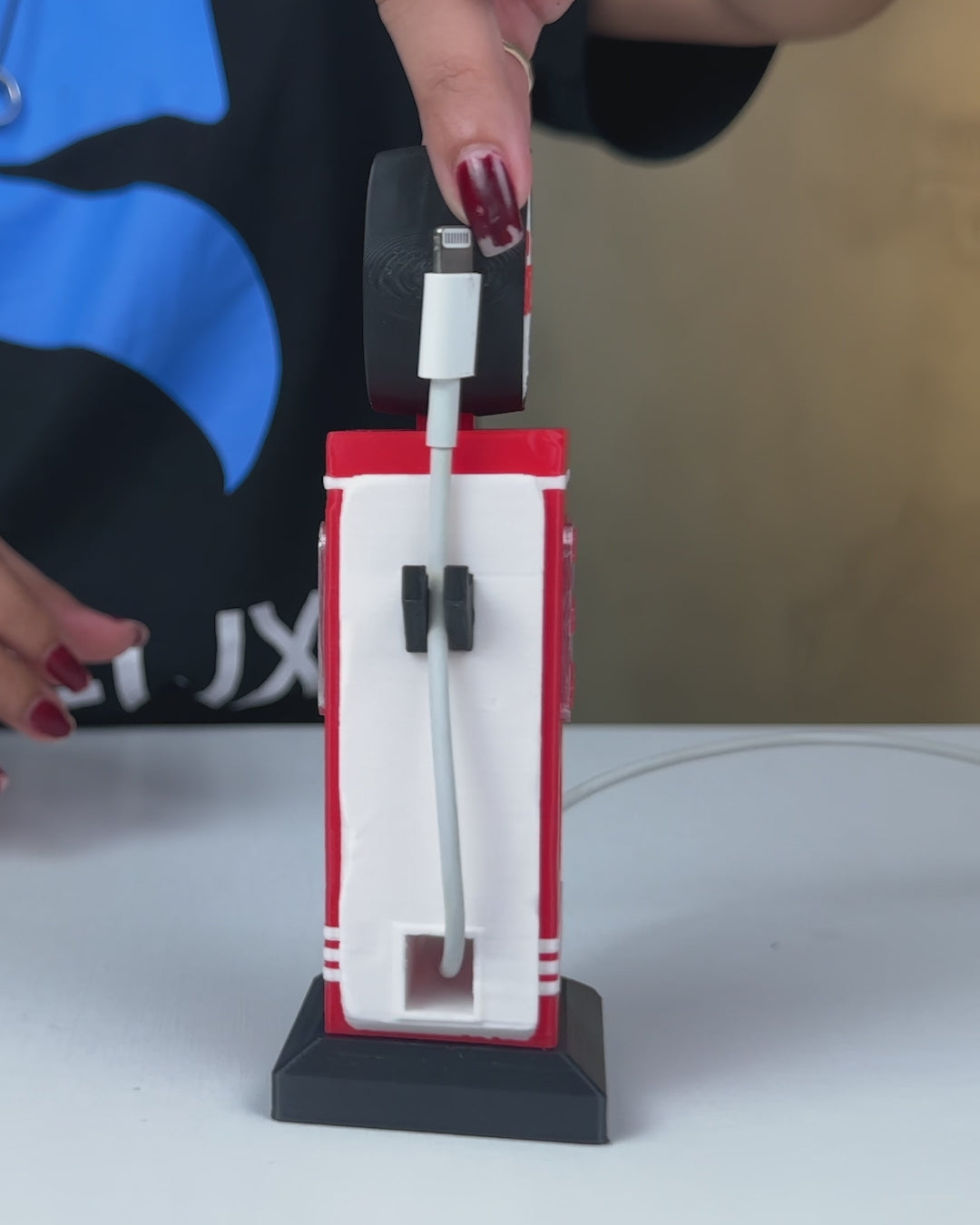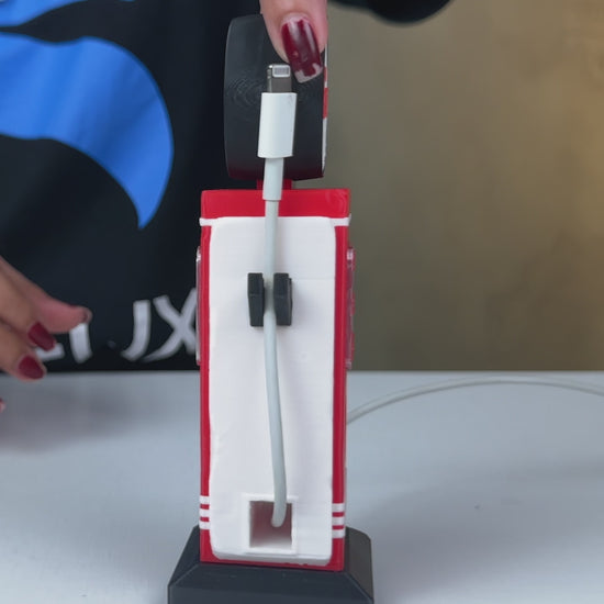Add some vintage charm to your desk or nightstand with this retro-style gas pump phone charger stand. Designed with a classic 50s diner aesthetic, this functional accessory doubles as a charging dock and a quirky display piece.