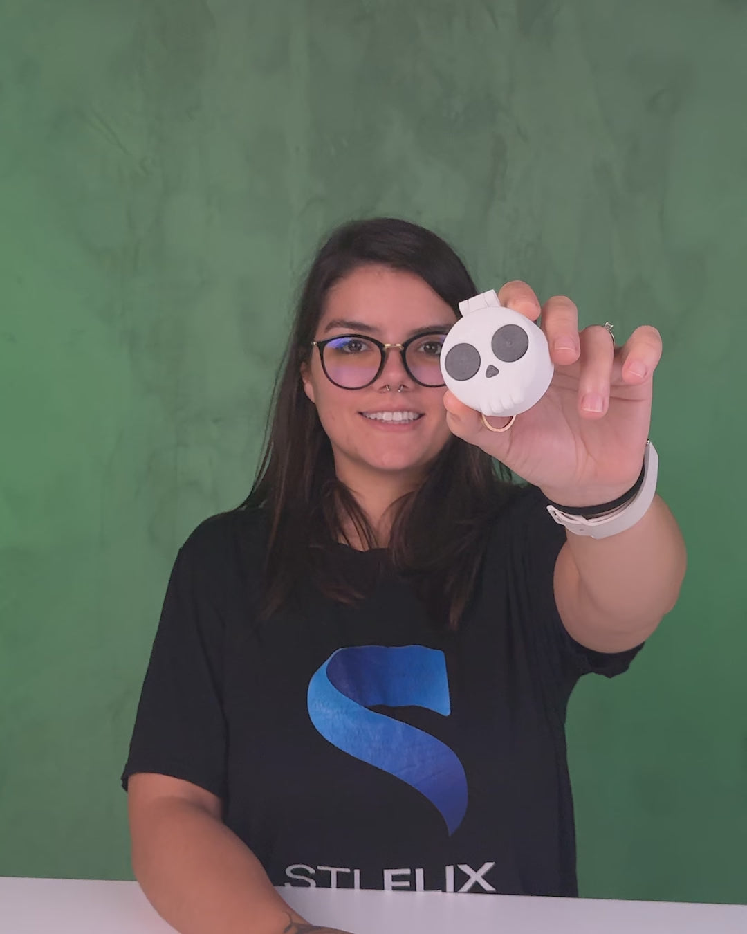 Hinged skull design with secure snap closure