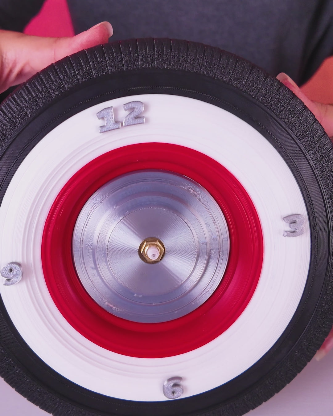 Bring automotive style to your space with this unique tire-inspired wall clock. Designed to look like a real tire with tread detail, it’s perfect for garages, workshops, car enthusiasts, or themed rooms. Durable PLA construction ensures it’s lightweight yet eye-catching.